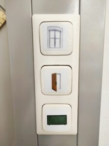 Alle Unterrichtsräume sind inzwischen mit passenden Symbolen – Entwürfe und finale Gestaltung durch Annika Matthäus, 10C – für die Lichtschalter beklebt, um nur noch die benötigten Lichtquellen zu nutzen, und die Abfalleimer des Restmülls mit neuer, deutlicherer Kennzeichnung versehen.