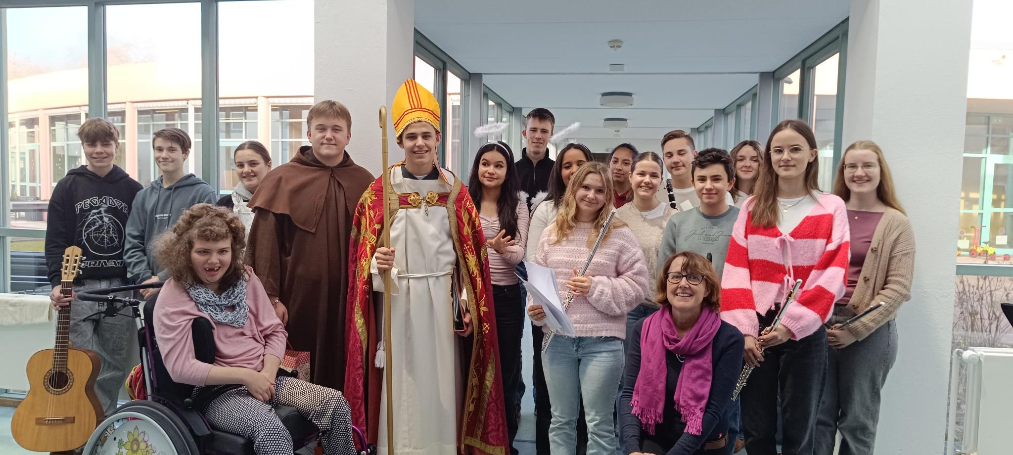 Elftklässler des Ringeisen-Gymnasiums besuchen mit dem Nikolaus Vorschüler der Dominikus-Schule