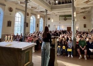 Bereits am ersten Schultag waren die neuen Fünftklässlerinnen und Fünftklässler mit ihren Eltern zu einem besonderen Segnungsgottesdienst in St. Josef eingeladen. Sr. Dominika und Schulleiter Andreas Merz begleiteten die Zelebranten bei der Einzelsegnung und überreichten jeder und jedem als Geschenk einen Schlüsselanhänger mit einem roten Schutzengel – Symbol für Herzblut, Power, Nächstenliebe und den Engel als Begleiter durch das kommende Schuljahr.