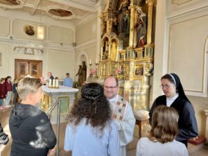 Am zweiten Schultag fanden in St. Florian drei ökumenische Gottesdienste für Unter-, Mittel- und Oberstufe statt. Unter dem Motto „Freude im Herzen – Segen auf dem Weg“ wurden die Schülerinnen und Schüler musikalisch mit dem Stück „Sonnenaufgang“ von Richard Strauss eingestimmt. Das Bild des neuen Schuljahres wurde mit einem neuen Tag unter der Sonne verglichen – im Hintergrund stand der 800. Jahrestag des Sonnengesangs des heiligen Franz von Assisi.