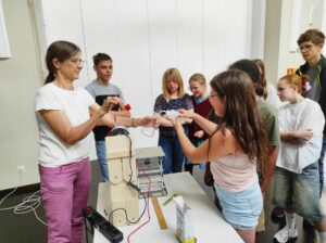 Neben der Theorie stand aber auch die Praxis auf dem Plan. So konnten die Schülerinnen und Schüler anhand des Klimakoffers der LMU durch Versuche selbst erkennen und nachweisen, dass Sonneneinstrahlung und Wärmestrahlung im Gleichgewicht sind. Durch Treibhausgase wie Kohlenstoffdioxid wird im natürlichen Treibhauseffekt zusätzliche Wärmestrahlung in der Atmosphäre in Erdnähe behalten, sodass auf der Erde Temperaturen herrschen, die Leben erst ermöglichen.