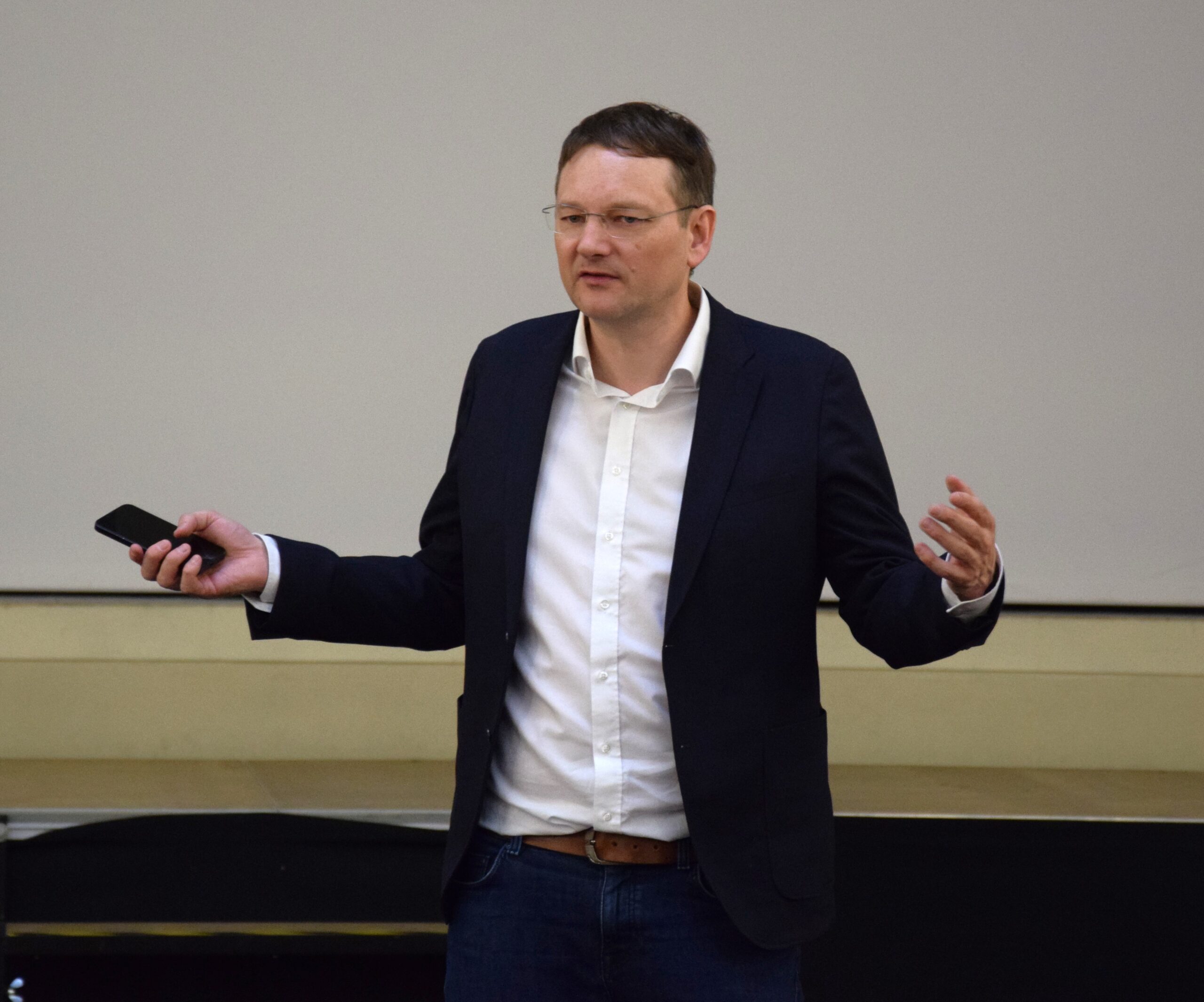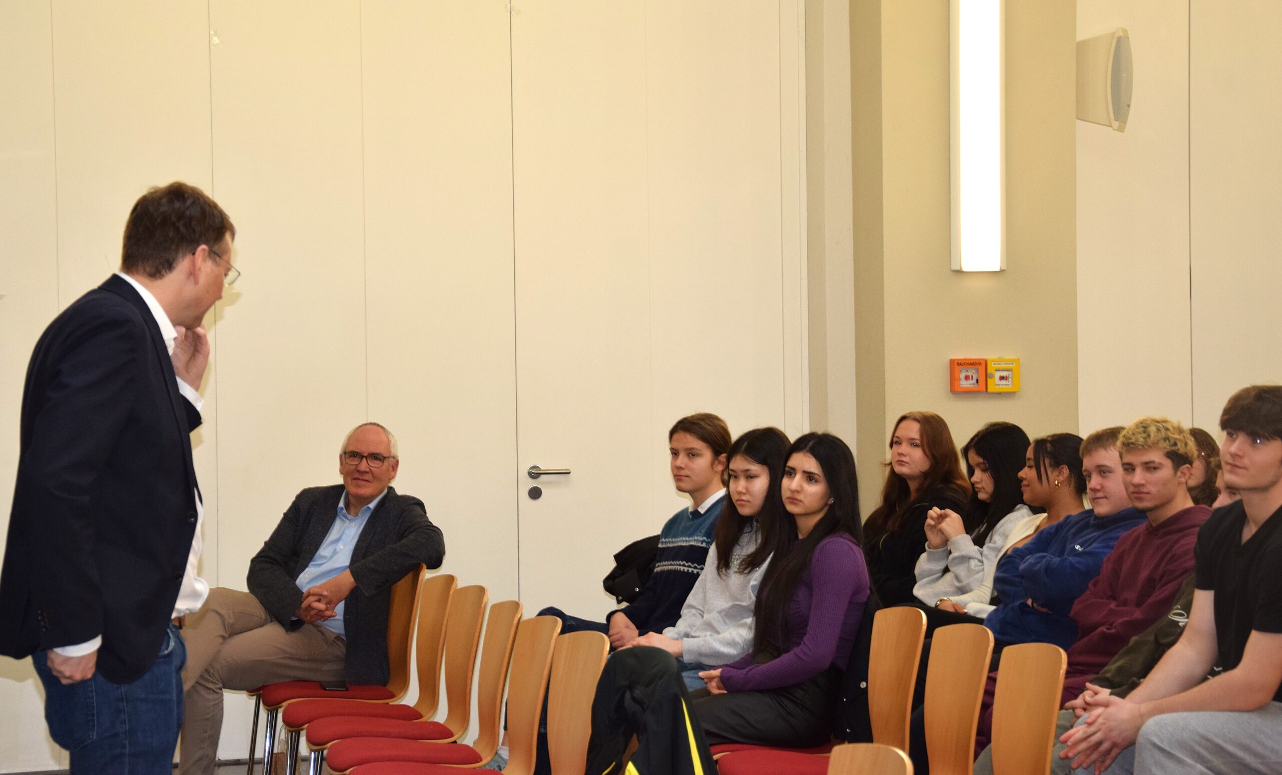 Mehr als eine Stunde lang stellte sich Landrat Reichhart für eine spannende und aufschlussreiche Frage-Antwort-Runde zu Verfügung. Hierbei ging er stets mit der nötigen Transparenz und Nähe auf die Fragen der Schülerschaft ein und erklärte verschiedenste Abläufe und Ziele eines Landratsamtes. „Wir kümmern uns um alles, was das tägliche Leben betrifft“, beginnt Reichhart, während er auf diverse Errungenschaften im Landkreis Günzburg eingeht.