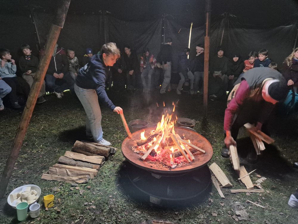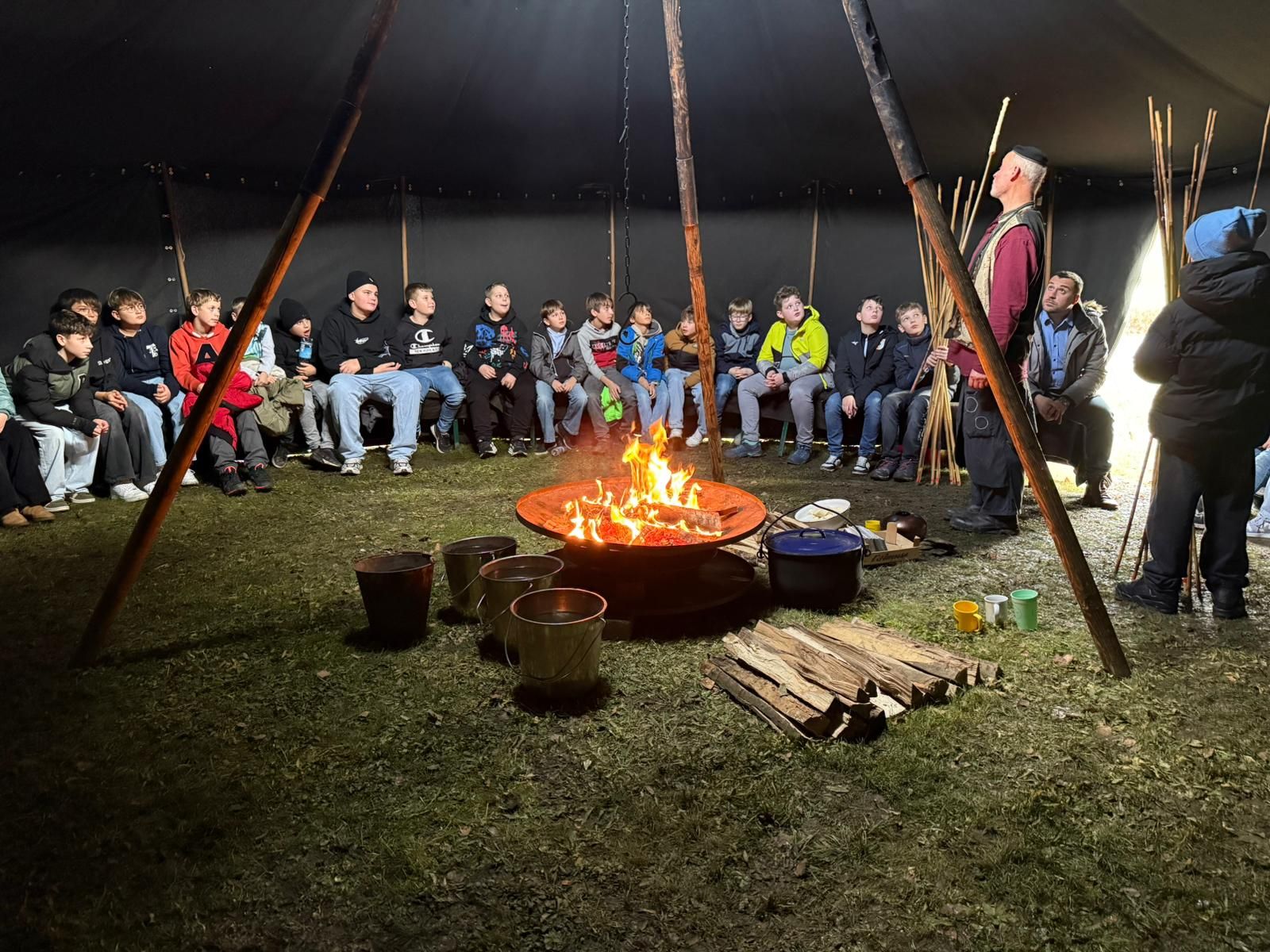 Für die Schülerinnen und Schüler der fünften Klassen stellte dieser Vormittag eine willkommene Abwechslung und einen stimmungsvollen Moment in der Adventszeit dar. Fischer verstand es meisterhaft, seine Zuhörer in eine tiefe Konzentration zu ziehen. Im Inneren des Zeltes, umgeben von dem wohligen Knistern eines warmen Feuers und dem Duft von selbst zubereitetem Punsch, entfaltete sich eine dichte, fast meditative Atmosphäre.