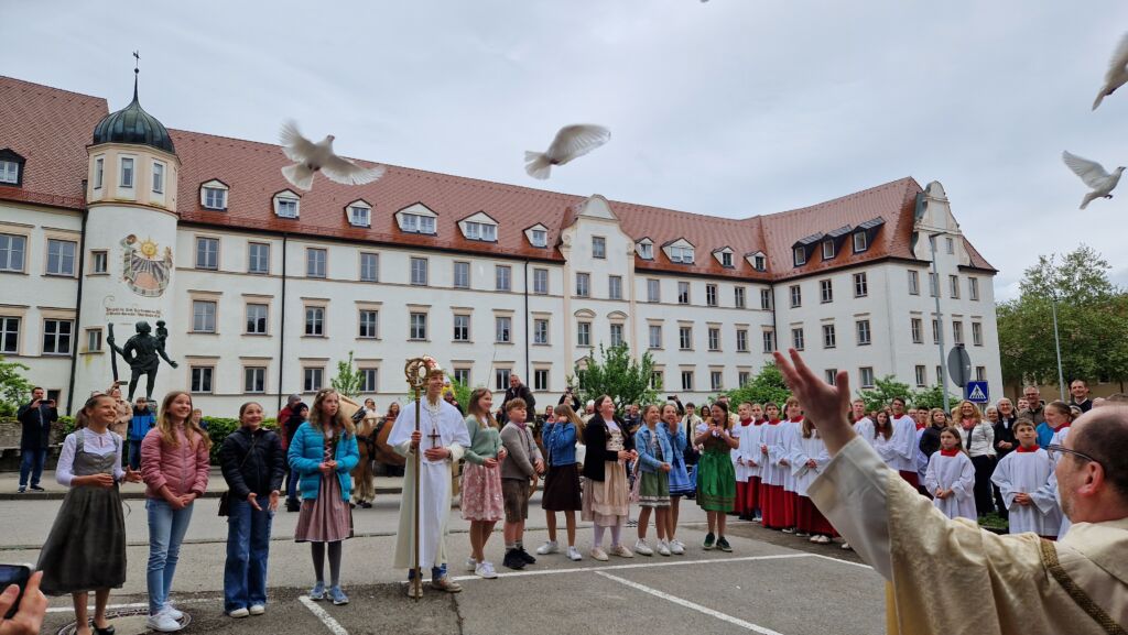 Im Anschluss an den Festzug ließen Schülerinnen und Schüler vor der Kapelle St. Florian Friedenstauben in den Himmel steigen. Norbert sei zu Lebzeiten darum bemüht gewesen, Frieden zwischen Menschen und Parteien zu stiften, erklärte Pater Christian. „Auch wir haben den Wunsch nach Frieden und senden deshalb dieses Zeichen in den Himmel.“