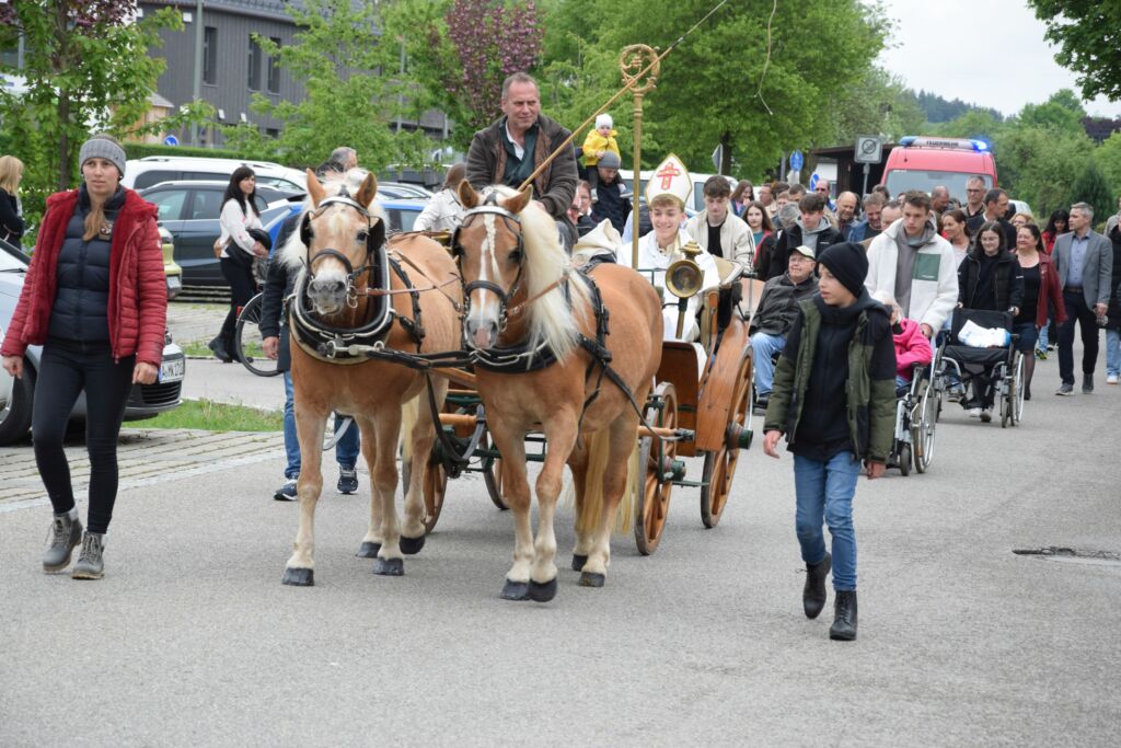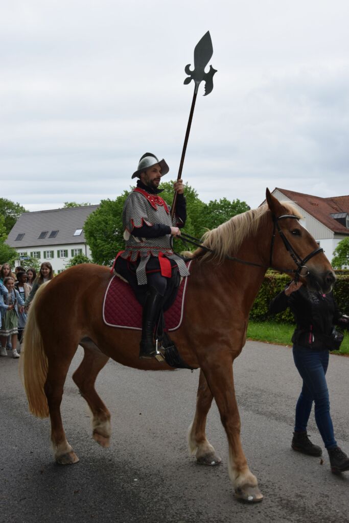 Um die Geschichte auch 900 Jahre später erlebbar zu machen, hatten sich die Organisatoren um den Roggenburger Prämonstratenser und Schulseelsorger Pater Christian Hamberger etwas Besonderes ausgedacht: In einer Kutsche ließen sie Norbert von Xanten, gespielt von Schüler Leo Rothermel, auffahren. Begleitet wurde er von über 60 Ministrantinnen und Ministranten des Ringeisen-Gymnasiums, zahlreichen Geistlichen und einem mittelalterlichen Herold hoch zu Ross. Eine besondere Ehre wurde Josef Kerscher zuteil. Er lebt seit vielen Jahren in Ursberg und durfte anlässlich seines 75. Geburtstags als Prämonstratenser-Mönch verkleidet in der Kutsche Platz nehmen. Ehrengast war Abt Petrus Adrian Lerchenmüller von der Prämonstratenser-Abtei Windberg bei Straubing, zu der auch Kloster Roggenburg gehört.