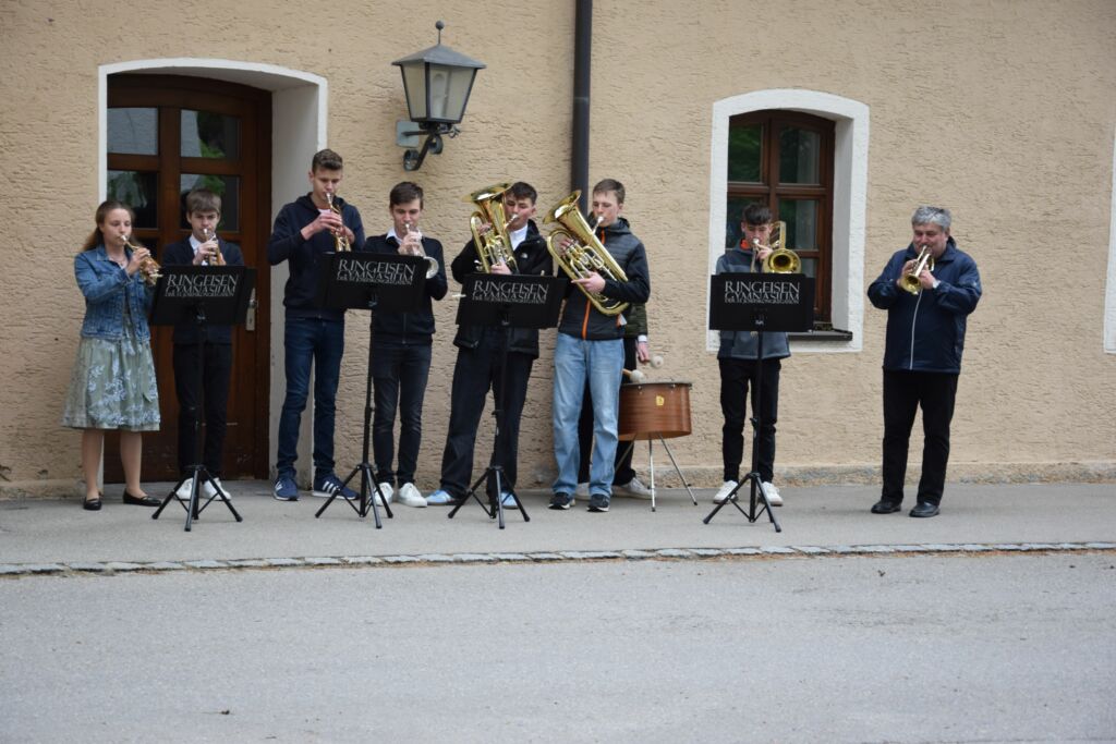 Musikalisch gestaltet wurde der Gottesdienst vom Wahlkurs „Neues geistliches Lied“ unter der Leitung von Dorothee Henzler-Stolle und vom Bläserensemble des Ringeisen-Gymnasiums unter der Leitung von Andreas Altstetter. Dieser hatte extra eine Jubiläums-Fanfare komponiert, die beim Kirchenzug ihre Premiere hatte. Im Anschluss an den Gottesdienst bewirtete der Elternbeirat des Gymnasiums die Gäste im Ringeisen-Saal.