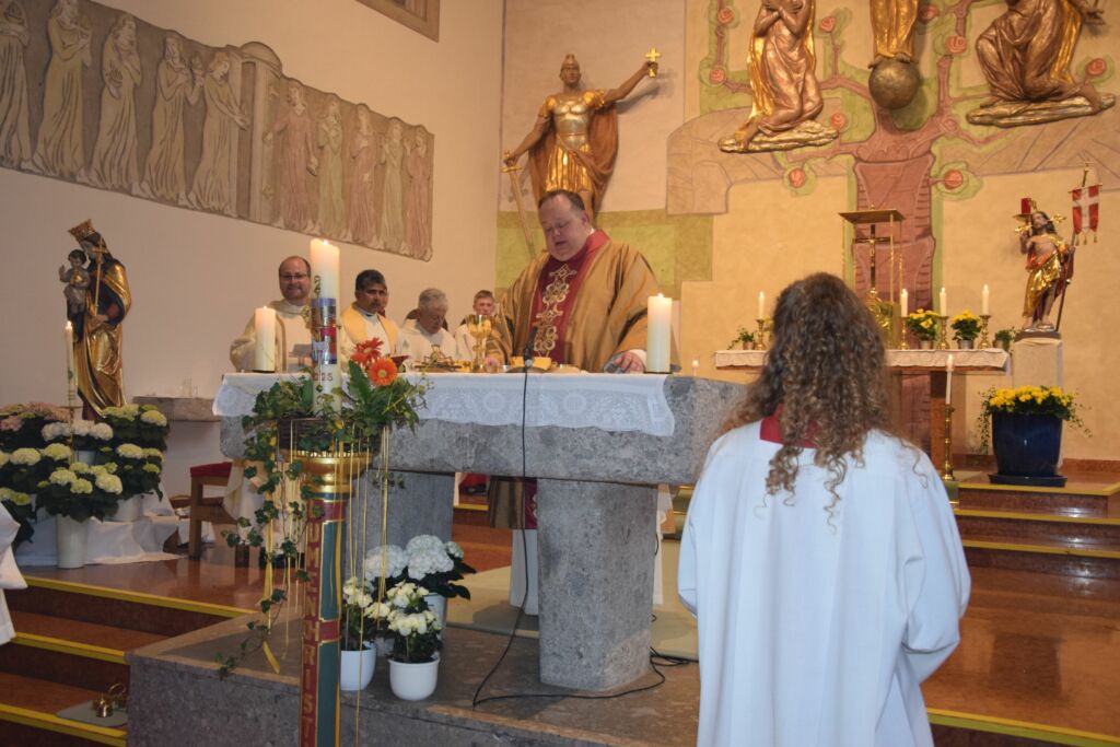 Der Festgottesdienst, der ursprünglich unter freiem Himmel im Klosterhof geplant gewesen war, musste wetterbedingt in die Kapelle St. Florian verlegt werden. Die Predigt stand ganz im Zeichen des heiligen Norbert. Er habe in einer turbulenten Zeit gewirkt, sagte Abt Petrus. Papst, Gegenpapst, Kirchenspaltung und Konflikte hätten letztlich dazu geführt, dass sich Männer nach seiner Ordensregel in Ursberg zusammengefunden hätten und ein Kloster gründeten. „Auch bei uns geht heute manches drunter und drüber. Viele Menschen wissen nicht mehr, an was sie sich halten sollen“, sagte der Abt. Oft drehe sich alles nur noch um den eigenen Egoismus. Ein Blick auf das Leben des heiligen Norbert könne Orientierung geben.