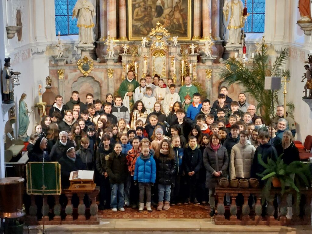 In der Faschingszeit erlebten rund 60 Schülerinnen und Schüler unserer Schule, die täglich aus den Stauden nach Ursberg pendeln, einen besonderen Gottesdienst. Gemeinsam mit dem Vokalensemble unter der Leitung von Johanna Schwarzmann und dem Bläserensemble, dirigiert von Andreas Altstetter, gestalteten sie eine feierliche Vorabendmesse in ihrer Pfarreiengemeinschaft „Stauden“, genauer in St. Alban in Walkertshofen.